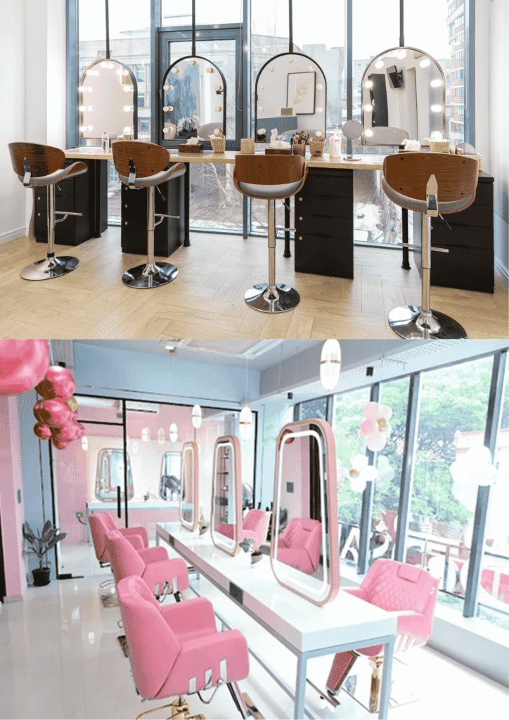 •8 hair treatment beds with additional hair wash stations